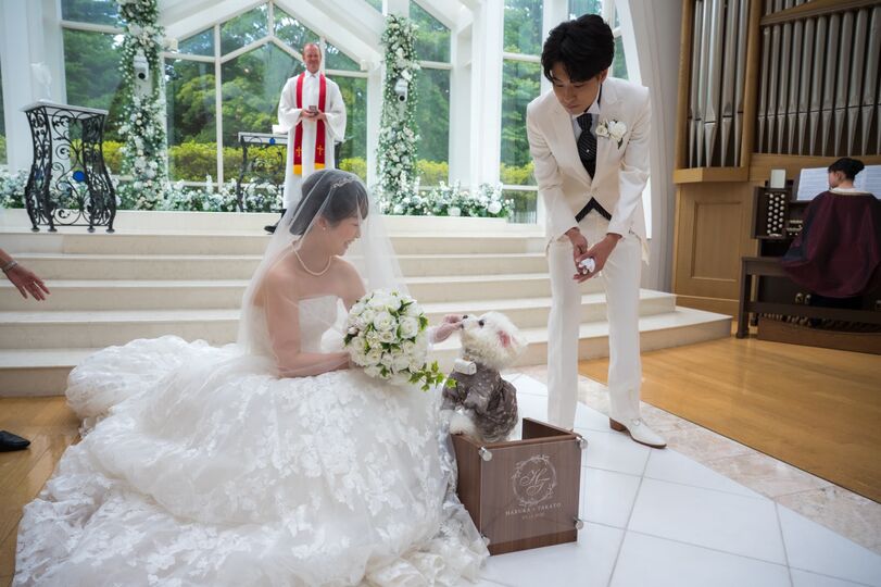 わんちゃんものびのび歩けるチャペルで、リングドッグをしっかり務めていただきました。